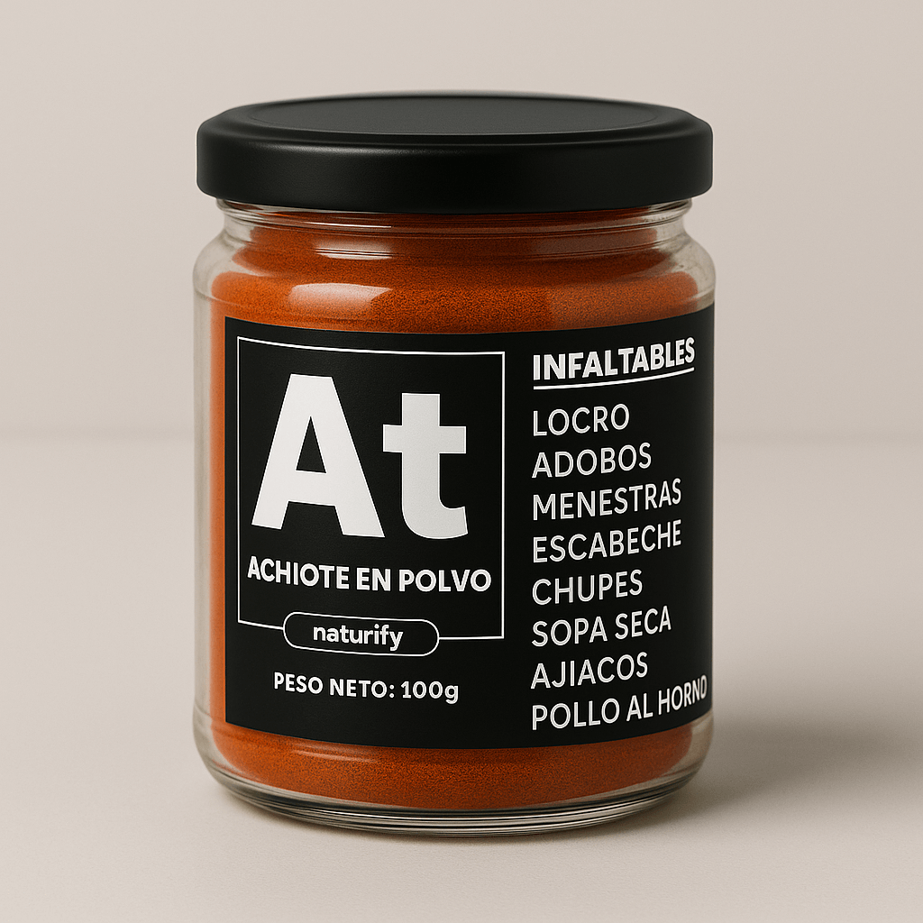 Achiote Peruano en Polvo, 100% puro y natural. Perfecto para realzar tus platos con el genuino toque andino. Ideal para sopas, salsas y guisos. Calidad premium, sin aditivos ni conservantes. Añade lo mejor de Perú a tu cocina hoy mismo.